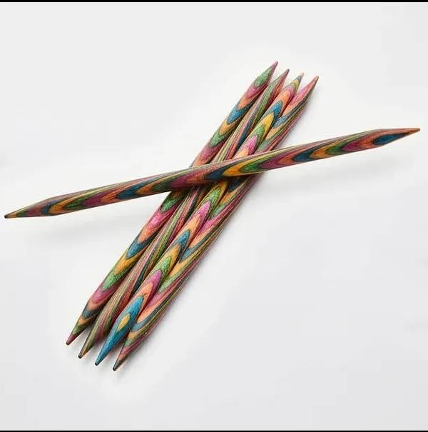 Juego de 5 agujas de doble punta del nº 8 marca Knitpro Symfonie madera. La aguja mide 15 cm