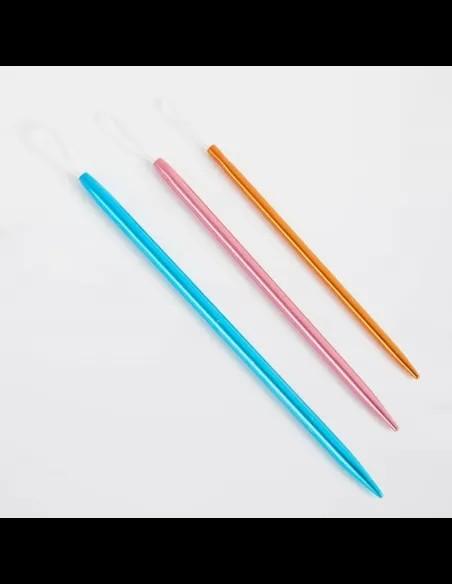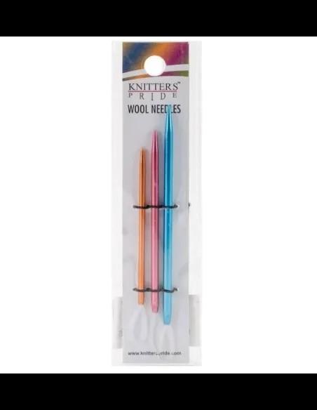 3 agujas laneras metálicas de knitpro en 3 tamaños y con punta recta