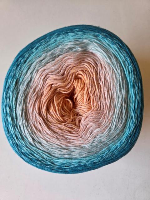 Ovillo de colores degradados. Grosor Fingering. 100% algodón orgánico. 1000 metros de hilado por ovillo