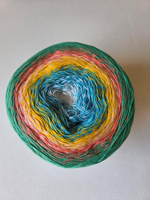 Ovillo de colores degradados. Grosor Fingering. 100% algodón orgánico. 1000 metros de hilado por ovillo