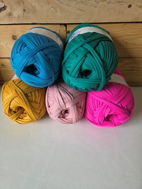 Ovillo de trapillo de 400 gramos y 135 metros aprox 95% Microfibra + 5% Elastano.